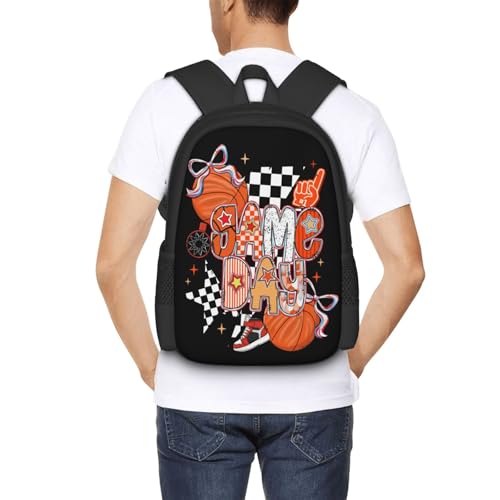 Retro Basketball Lightning Bolt Game Day Backpack Large Capacity Backpacks Leisure Travel Daypack 12.5X5.5X16.5 inch 7