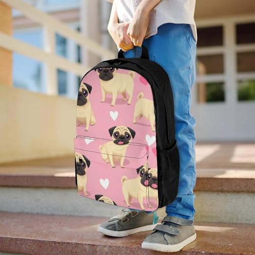 Supdreamc Lightweight Rucksacks for Climbing Outdoors Walking Cycling - Large Capacity Anti-Theft Multipurpose Carry On Bag, Funny Cartoon Pugs Puppy Pink Camping Outdoor Backpack 7