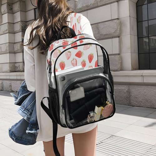Cute Watercolor Strawberry Clear Backpack - Stadium Approved Large 15.7-inch Waterproof Transparent Bag for Sports, Concerts, Work, Travel#100 7