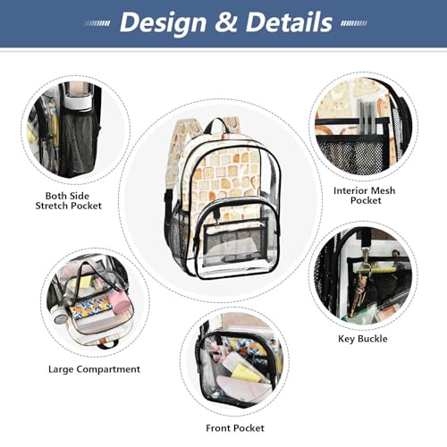 Watercolor Bread Pattern Clear Backpack - Stadium Approved Large 15.7-inch Waterproof Transparent Bag for Sports, Concerts, Work, Travel#177 5