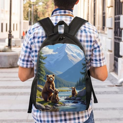 HOT ! Comfort Fit Unisex Grizzly Bears Forest Mountains Backpack Durable for Daily Commute Travel Adventures 16 Inch