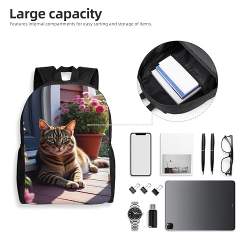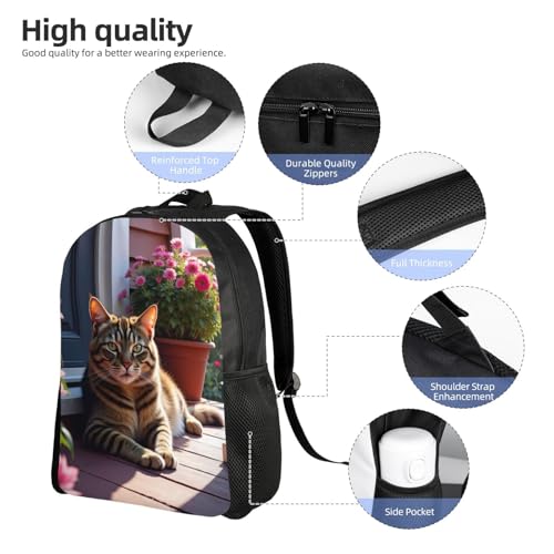 HOT ! Comfort Fit Unisex Tabby Cat On Porch with Flowers Backpack Durable for Daily Commute Travel Adventures 16 Inch