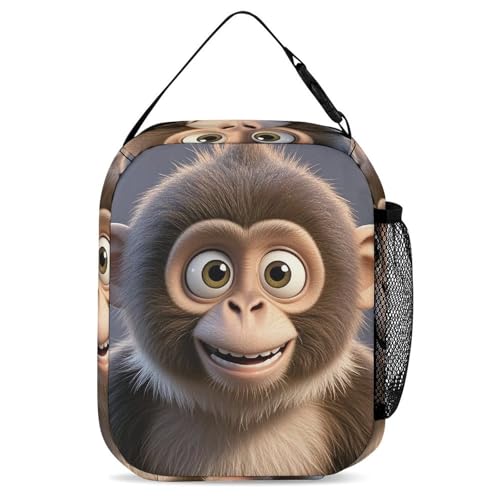 More information about Cartoon Brown Monkey Backpack Set 3 Piece, Durable Backpack Insulated Lunch Bag Portable Pencil Case for Men Women