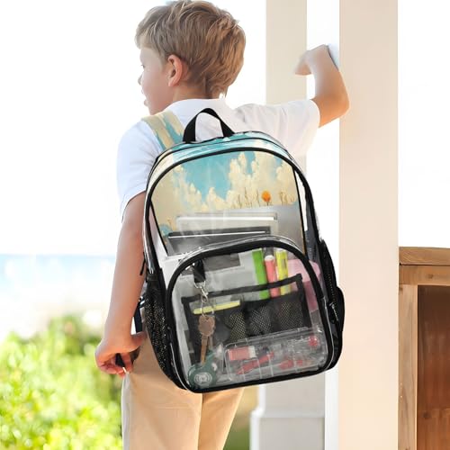 Wild Flowers Oil Painting Clear Backpack - Stadium Approved Large 15.7-inch Waterproof Transparent Bag for Sports, Concerts, Work, Travel#233 4