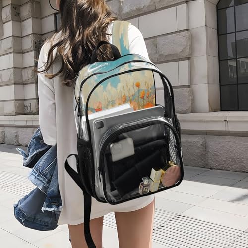 HOT ! Wild Flowers Oil Painting Clear Backpack - Stadium Approved Large 15.7-inch Waterproof Transparent Bag for Sports, Concerts, Work, Travel#233