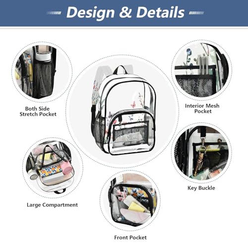 HOT ! Wildflowers and Butterflies Clear Backpack - Stadium Approved Large 15.7-inch Waterproof Transparent Bag for Sports, Concerts, Work, Travel#292