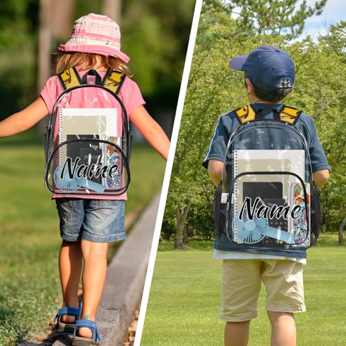 More information about BulldozerPersonalized Clear Small Backpack for Stadium Events Construction Vehicle Custom Transparent Backpacks with Name Heavy Duty PVC Plastic See Through Clear Bag for Concerts