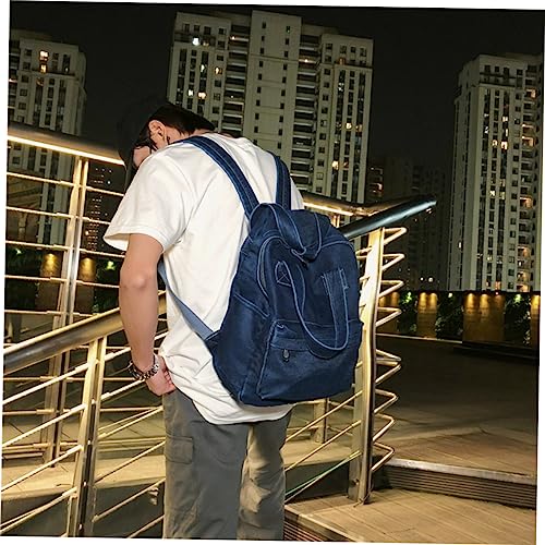 VANZACK High Capacity Denim Backpack for Men and Women Fashionable Storage Shoulder Bag Breathable Straps for Students Dark Blue 7