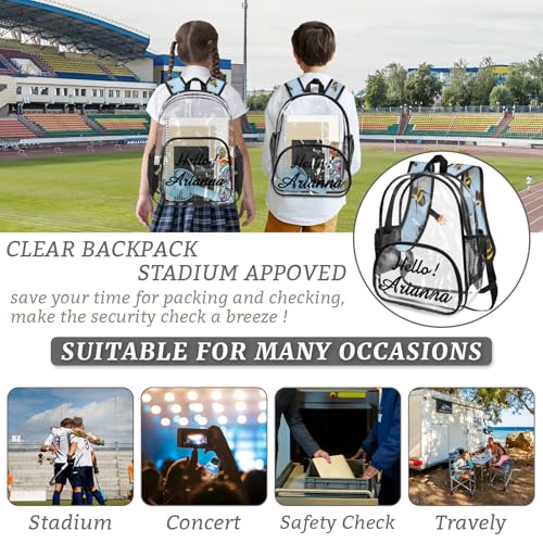 • PERSONALIZED DESIGN: Personalized transparent backpack can be printed with your name, initials or any text you need. Click the "Customize" button to create a unique style tailored for you