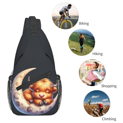 HOT ! Dreamy Cow on the Moon Cross Chest Bag Large Capacity Bag Travel Hiking Crossbody Bag Daypack for Women Men