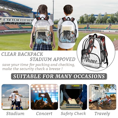 Personalized Rugby Clear Large Backpack for Stadium Events Custom American Football Transparent Backpacks PVC Plastic See Through Clear Bag for Concerts Festival Travel 6