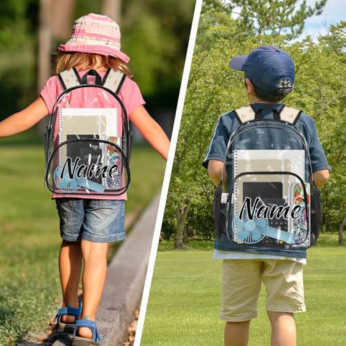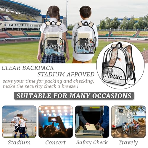 HOT ! Personalized Brown Bear Clear Small Backpack for Stadium Events Custom Transparent Backpacks with Name Heavy Duty PVC Plastic See Through Clear Bag for Concerts Cute Wildlife