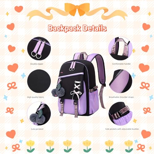 • Large Capacity Schoolbag for girls: Girls backpack with lots of compartments and cup holders could meet your various needs. The large compartment with a padded sleeve inside backpack for upmost 15.6 Inch.