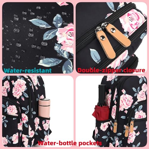 • Large Capacity: 11.8*16.5*6.7in (L*H*W),backpacks for girls with two main compartments, multiple pockets, and a laptop compartment, this backpack offers ample storage for books, school supplies, and gadgets. Stay organized throughout the day. 2 exterior zipper pockets; Water-bottle pockets on both sides;2 padded pockets (Can fit 15.6/14 inch laptop);4 interior open pockets;2 interior zipper pockets;3 interior pen pockets;1 thickened back pocket;1 inner hanging buckle.