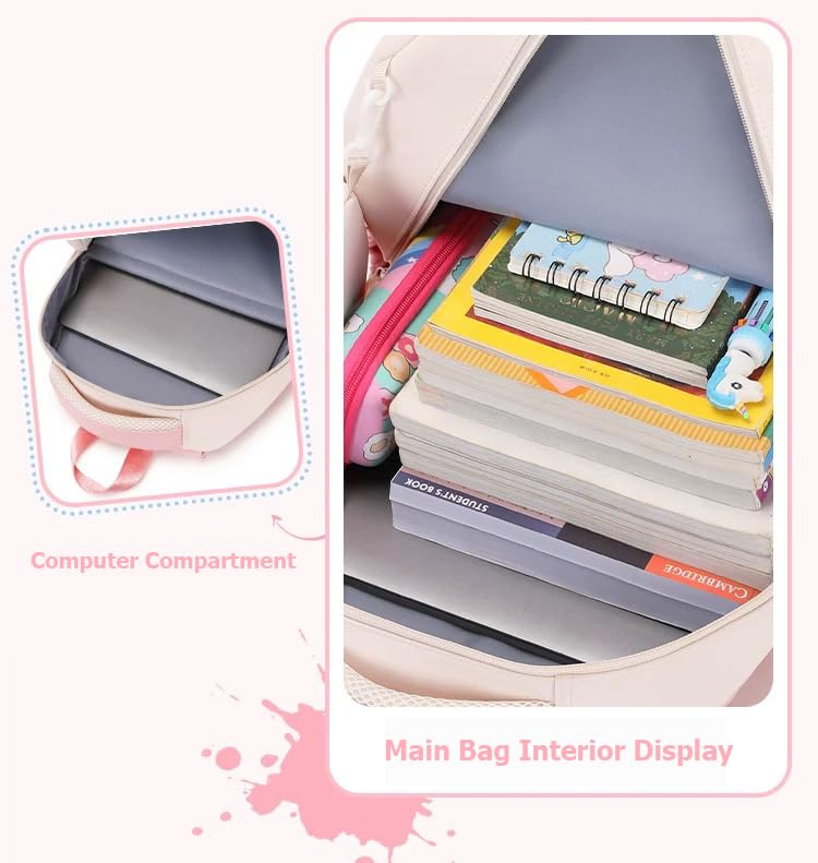 • Multifunctional and large capacity: The size of the backpack is 17.2 x 11.8 x 7.8 inches.The cute backpack has a main zippered compartment, separate computer compartment, 3 front pockets, and 2 side pockets on both sides of the backpack to hold a water bottle or umbrella. There is 1 anti-theft pocket on the back for loose change, cell phone and other items. The spacious compartments and multiple pockets can meet most of your needs, making your items more organized and easier to find.