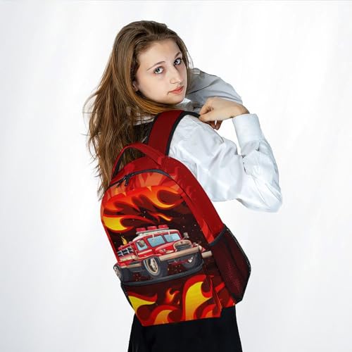 HOT ! COZYAURA School Backpack for Boys - 17 Inches Large Capacity Fire Truck Bookbag for Kids - Red School Bags for Elementary - Lightweight Cartoon Backpack