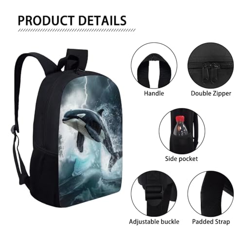 Killer Whale School Backpacks for Elementary Middle School Bags for Boys Girls Backpack with Lunch Bag And Pencil Case 5