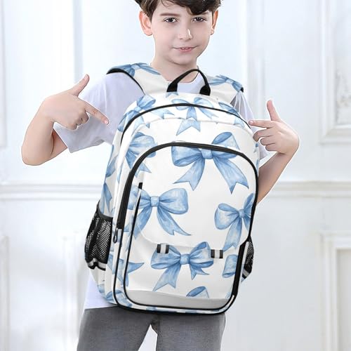 Blue Watercolor Coquette Bow Backpack for Boys Girls Elementary School Bag Kids Bookbag Travel Rucksack With Reflective Stripes 1