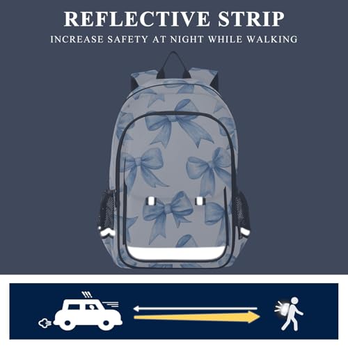 Blue Watercolor Coquette Bow Backpack for Boys Girls Elementary School Bag Kids Bookbag Travel Rucksack With Reflective Stripes 4