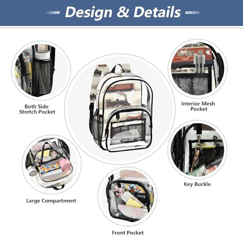 More information about Kids PVC Clear Backpack Steam Train Red Black Heavy Duty Multi-pockets Large Capacity Transparent See Through Bookbag for School Travel Sport Work