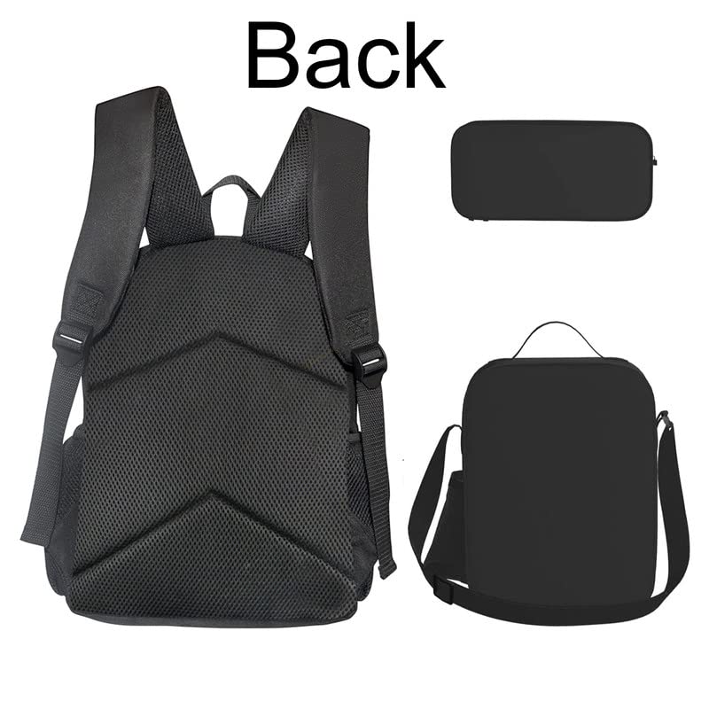 • ✏️School Backpack: Material Back: 600D Polyester,Front 100% Polyester;Lunch Bag: Made of polyester material, lining material is EVA + PE cotton; Pen Case: Made of 100% Polyester.Lightweight and portable, polyester, breathable soft back material, with zipper closure style, can be Adjustable shoulder straps. Lightweight and large capacity can hold tablet water bottle umbrella, suitable for travel, office, school, hiking, picnic. mobile phone and office supplies. Suitable for school, home, etc.