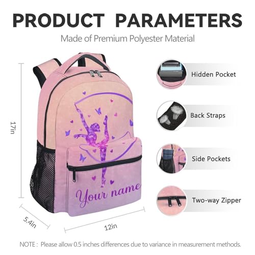 Personalized Gymnastics School Backpack for Girls - 17 Inch Light Colorful Backpacks for Kids 8-10 Years - Lightweight Cute Bookbag for Elementary 4