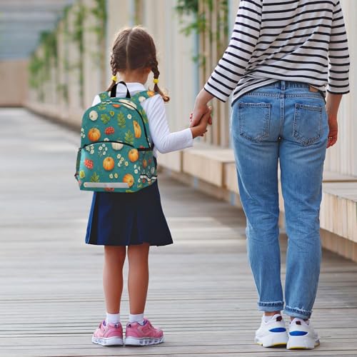 Toddler Girl Backpack with Leash, Orange White Pumpkins Travel Bookbag Mini Kids Backpacks 7