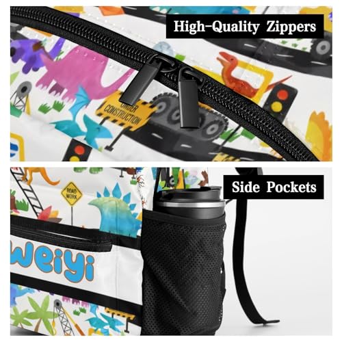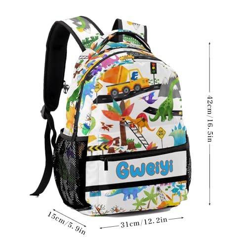 • Convenient Storage Backpack: Our unisex student cartoon truck dinosaur backpack features one main compartments,including a dedicated laptop for up to 16",storage space for books,It also boasts a discrete front stash pocket,offers ample storage space, Plus, two side pockets accommodate various water bottle sizes.