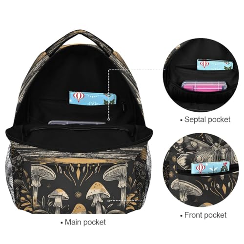 Retro Moon Mushroom Backpack for School Boys Girls Adults Kids Bookbag Laptop Bag 15L 5