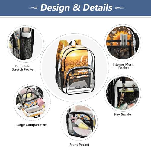 Clear Backpack for School Sunset Sunflower Transparent Bookbag for Girls See Through PVC Boy Backpacks 4
