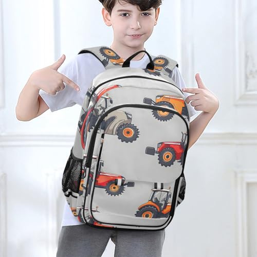 Cute Cartoon Tractor Grey Backpack for Kids, Front Flap School Bag, 17 Inch Durable Backpack for Boys, Age 6-12 2