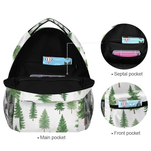 Kids School Backpacks, Watercolor Pine Trees Green Lightweight Travel Bag for Boys Girls Back to School Essentials,16 in 7