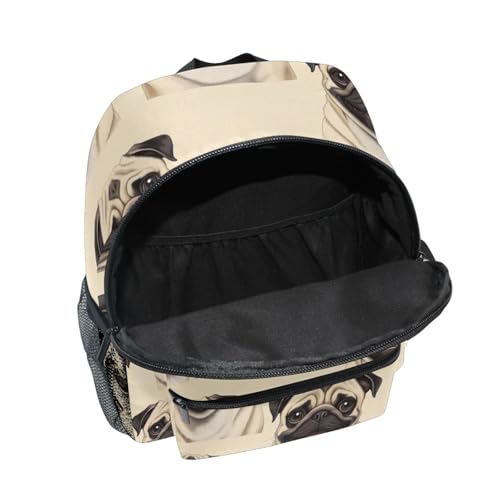Backpack for Toddler Boys Girls, Pugs Facial Expressions Travel Bookbag with Name Tag Small Kids Backpacks, 3-8 Years 1