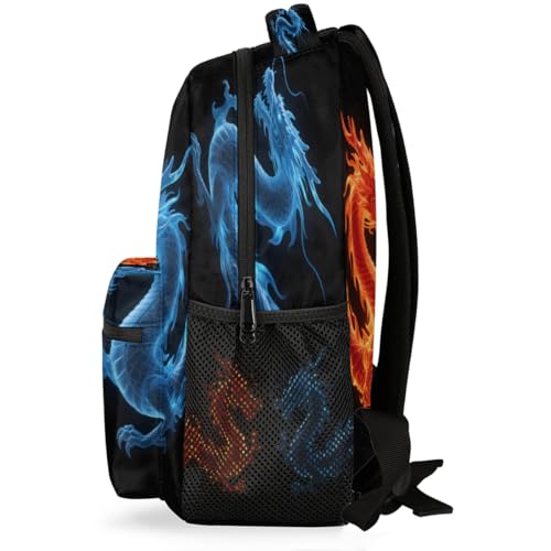 Red Blue Fire Dragon Kids Backpack, Lightweight School Bookbag Large Capacity Laptop Backpack Water Resistant Daypack Shoulder Bag for Teenager Boys Girls 4