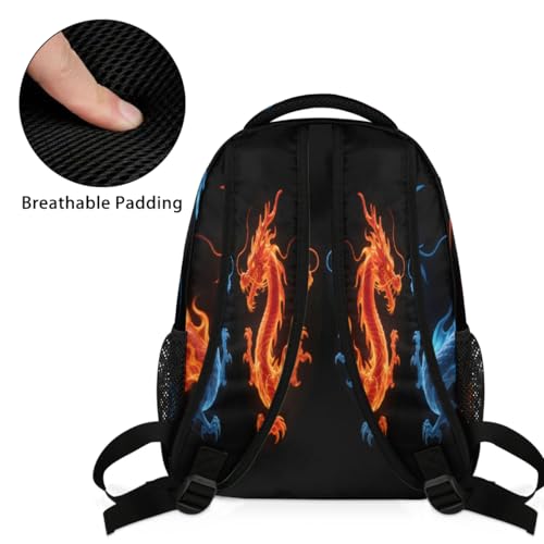 Red Blue Fire Dragon Kids Backpack, Lightweight School Bookbag Large Capacity Laptop Backpack Water Resistant Daypack Shoulder Bag for Teenager Boys Girls 5