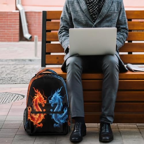 Red Blue Fire Dragon Kids Backpack, Lightweight School Bookbag Large Capacity Laptop Backpack Water Resistant Daypack Shoulder Bag for Teenager Boys Girls 7