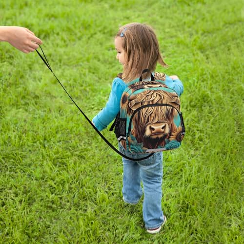 Kid's Backpack for Boys & Girls Toddler Bag Highland Cow Butterfly Rose Backpack with Safety Leash 1