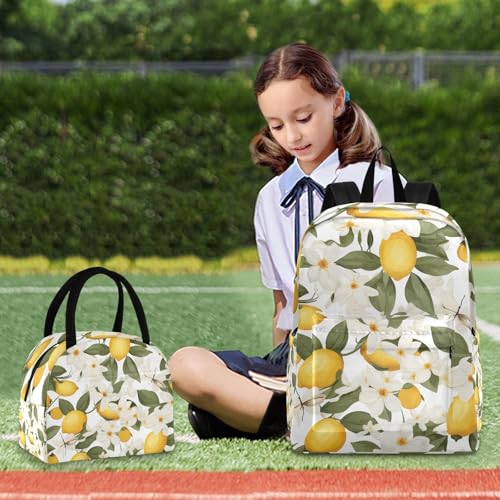 HOT ! Backpack and Lunchbox, Lemon Blossom Backpacks with Lunchbox, Middle School Backpacks for Boys and Girls