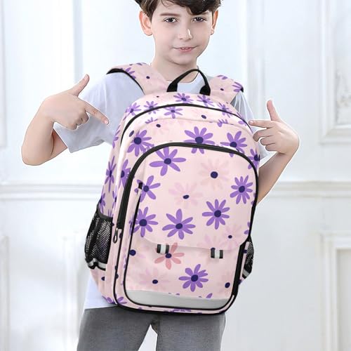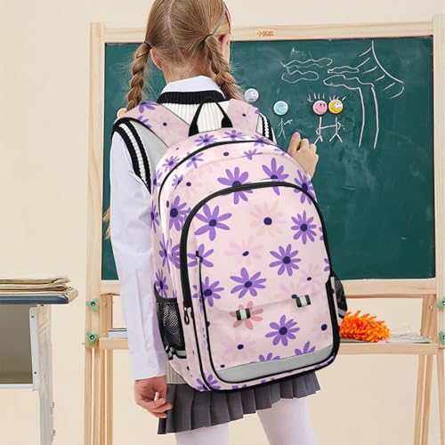 kids sport backpack 8-12: large capacity bookbag for women in assorted colors - simple Purple daisy pastel pink background 5