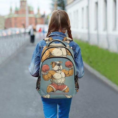 Boxing Dog Kid's Elementary Middle School Backpack for Son Daughter, Age 6-12 Back to School Backpack Bookbag Schoolbag for Boys Girls 4