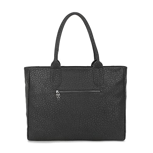 • √【Dimensional】: This skull handbag has a very large capacity.18.2*4*13in/46*10*33cm(L*W*H). With a detachable adjustable long shoulder strap. The unique silver skull and small rivet design make this women's Tote bag a classic but unique piece.