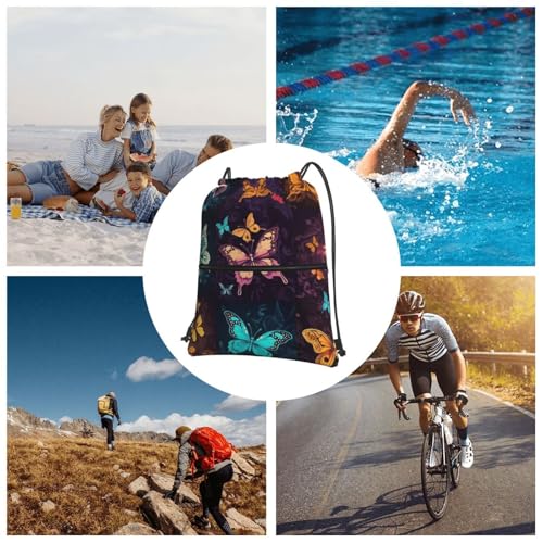 Drawstring Backpack Water Resistant String Bag Color butterfly pattern Sports Sackpack Gym Sack for Men Women 3