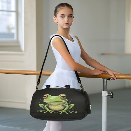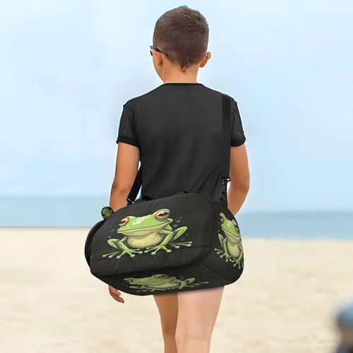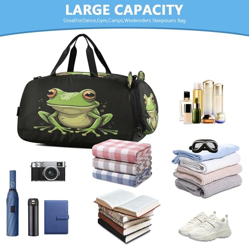 Cute Frogs Kids Overnight Sports Duffel Bags with Shoe Compartment & Wet Pocket Travel Sport Gym Bag for Girls Boys 5