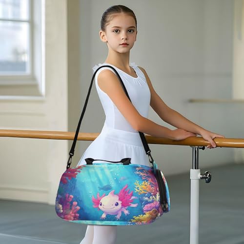 HOT ! Underwater Cute Pink Axolotl Sports Duffle Bag for Teens Girls Boys, Gym Bag with Shoe Compartment, Kids Travel Overnight Weekender Shoulder Bag