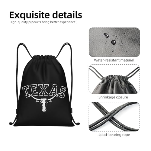 Texas Longhorn Lone Star State Texas Strong Drawstring Bag for Men Women Sport Backpack Gym Sackpack Black 5