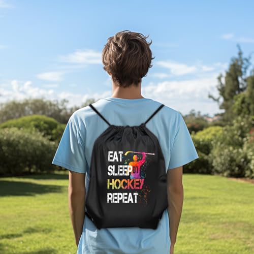 HOT ! Eat Sleep Hockey Repeat Drawstring Backpack For Men Women, Waterproof Sport Sackpack For Hockey Lover Hockey Fan, Funny Birthday Christmas String Gym Bag Gifts For Her Him