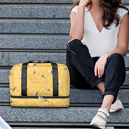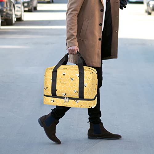 HOT ! Honeycomb Bee Sports Gym Bag with Shoes Compartment,Honeybee Animal Travel Duffel Bag for Men Women Boys Girls Teens Overnight Weekend Yoga Workout Bag Training Handbag