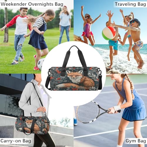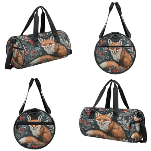 Animal Fox Berries Travel Gym Bag Waterproof Sport Dance Bag for Women Men Portable Gymnastics Duffel Bags Canvas Tote Carry on Handbag for Workout Overnight Weekender 7