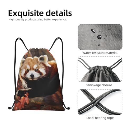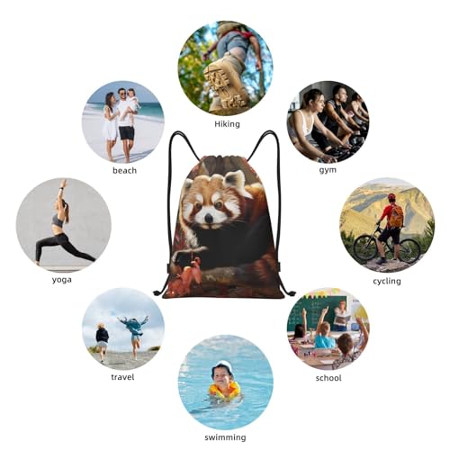 Red Panda Print Drawstring Bag Backpack Waterproof String Bag Sackpack For Gym Sport, Medium, Black 5
