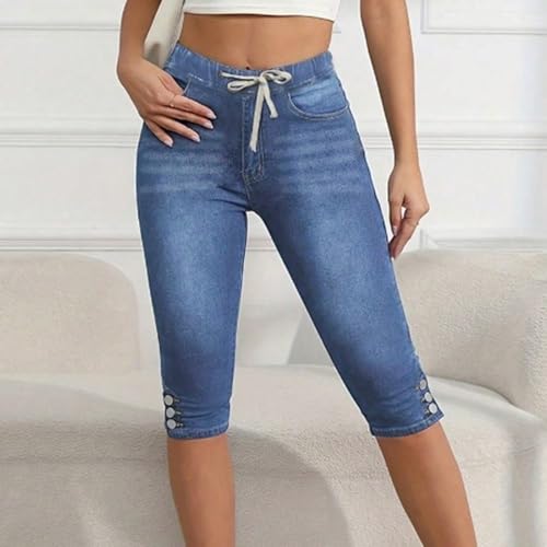 HOT ! Pull on Capri Jeans for Women Skinny Drawstring Stretchy Cropped High Waisted Denim Capris Pants Cowgirl Outfits